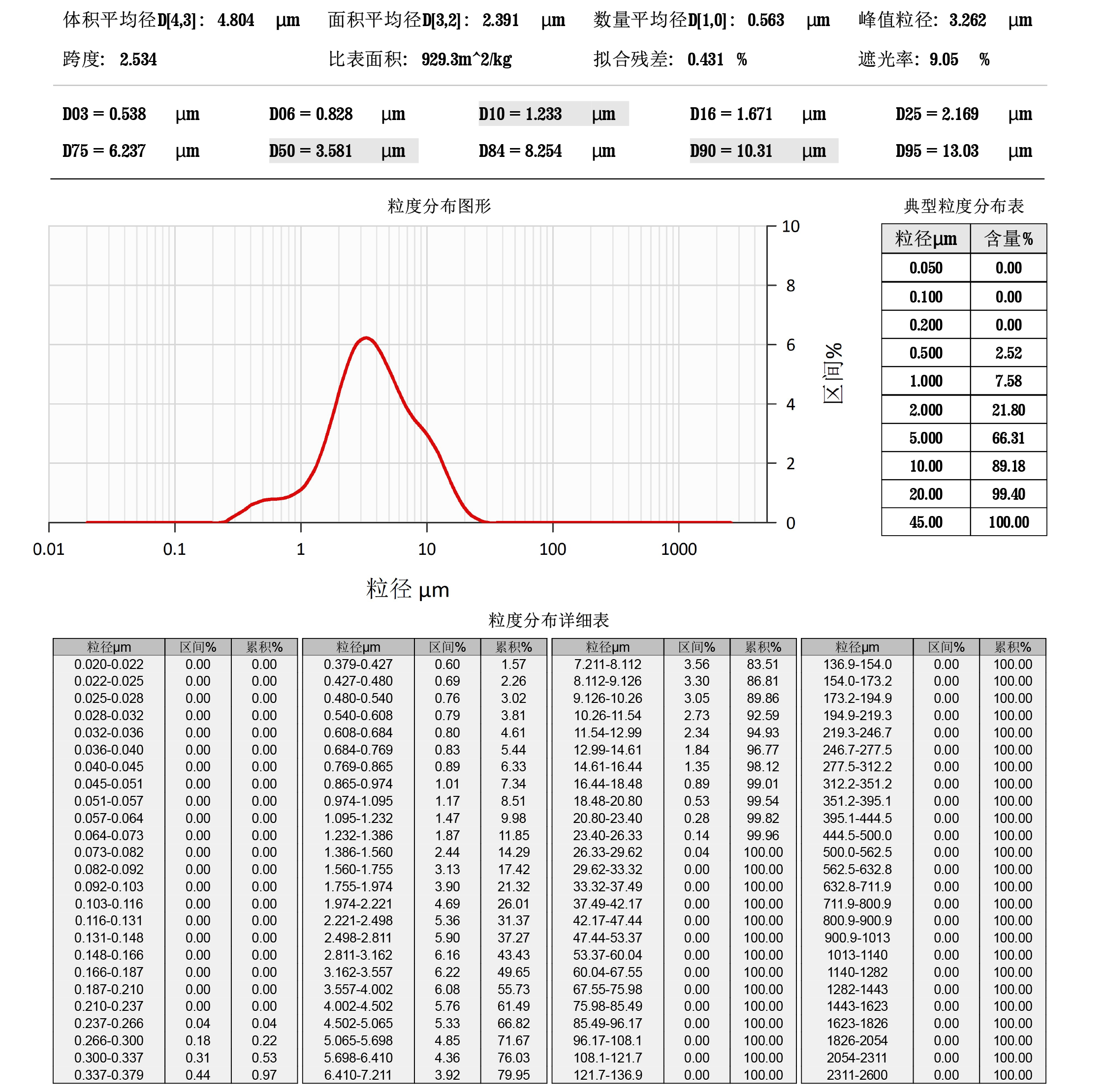 3. Take a small amount of ground material and then use the laser particle size analyzer wet component to detect the particle size (D50:2.5 microns D90:4.6 microns)