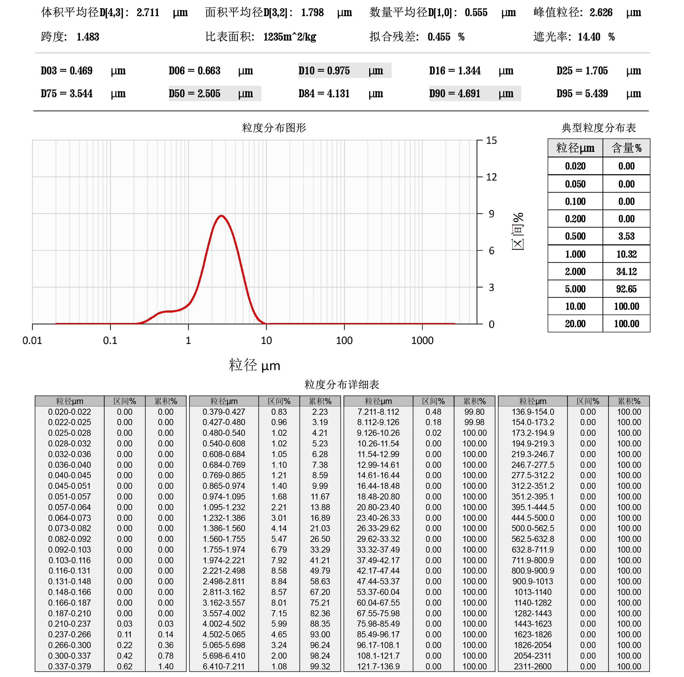1. Take a small amount of premixed material and use the laser particle size analyzer wet component to detect the initial particle size of the glue (D50:3.5 microns D90:10.3 microns)