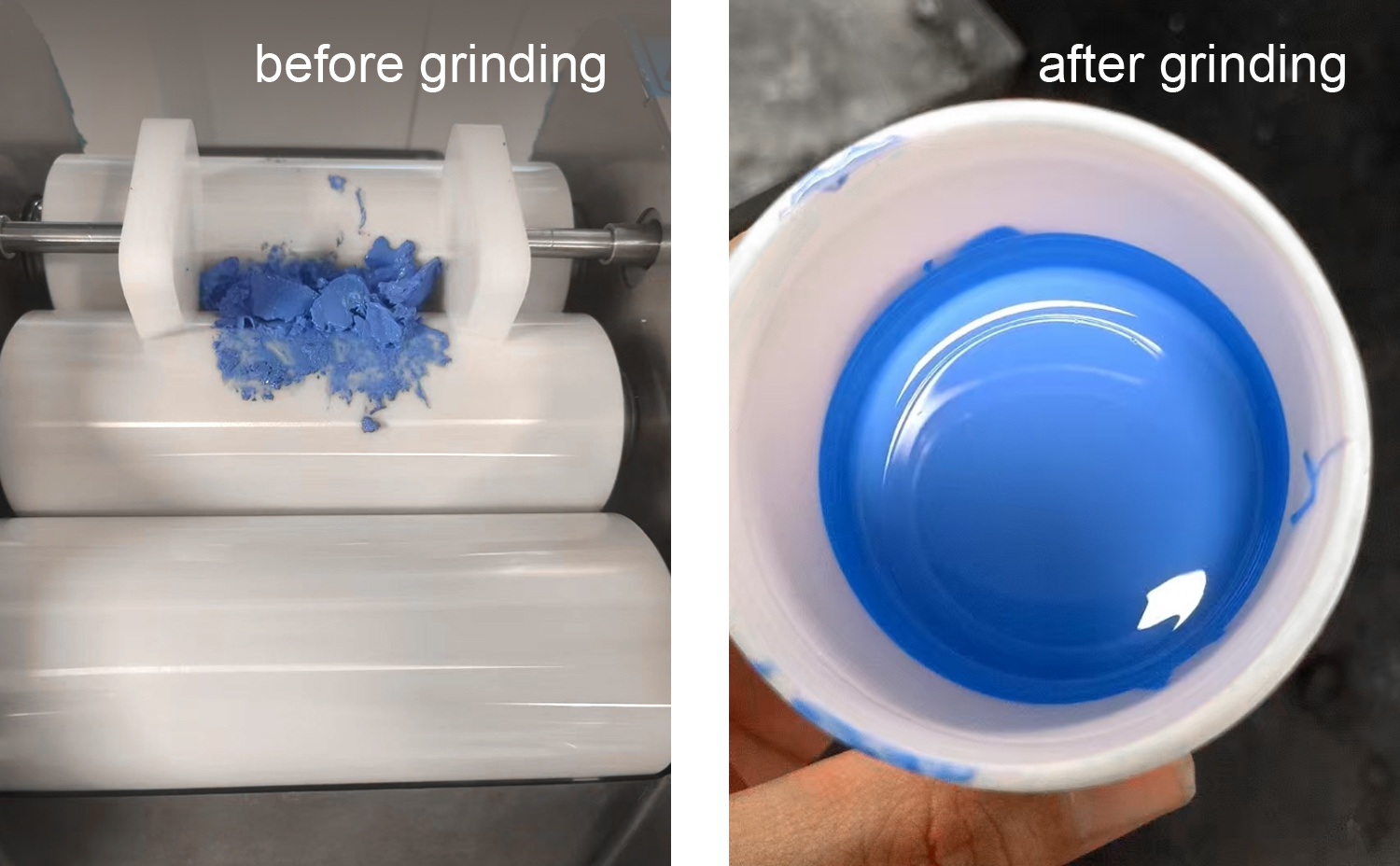 Test Objective: Achieve more uniform dispersion of the material and reduce the fineness to below 15μm through three-roll mill grinding.