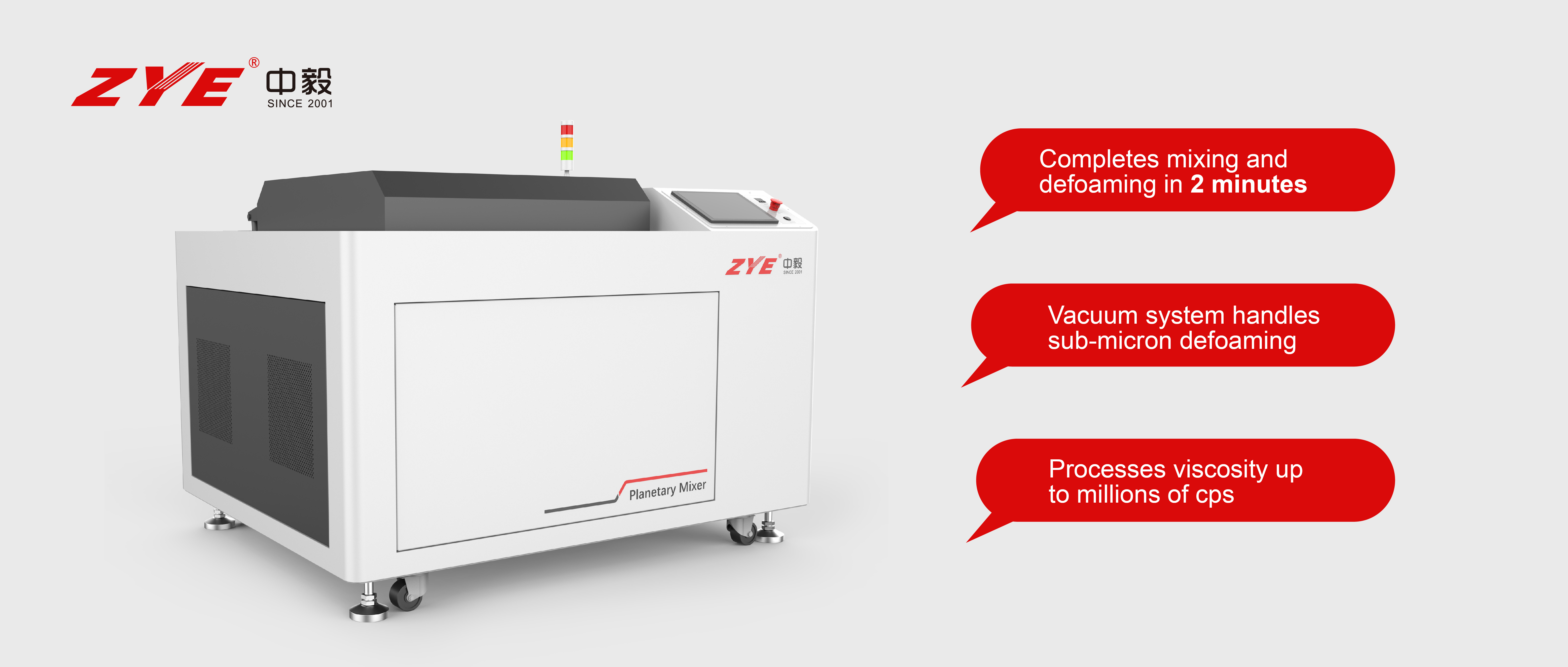 ZYE's mixing and dispersing equipment can improve material performance, not only with temperature control, mixing, defoaming, temperature measurement functions, but also can be applied to materials with different viscosity. It doesn't damage the material, but also better improve the material performance to meet the application needs of higher standards.