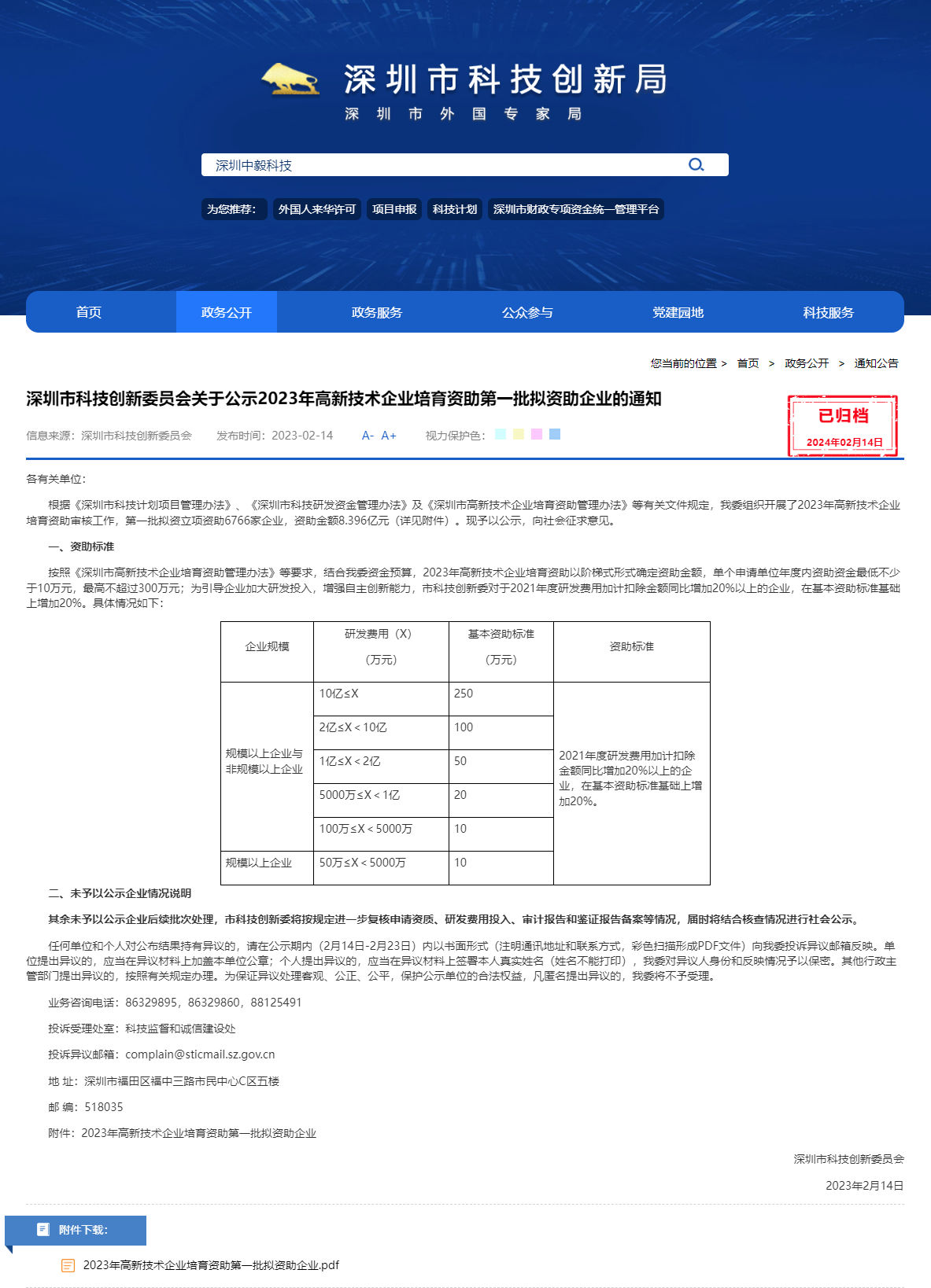 In line with its mission to guide enterprises in increasing R&D investment and enhancing independent innovation capabilities, and in accordance with regulations including the "Shenzhen Science and Technology Plan Project Management Measures," "Shenzhen Science and Technology R&D Fund Management Measures," and the "Shenzhen High-Tech Enterprise Cultivation Funding Management Measures," the Shenzhen Municipal Science and Technology Innovation Commission organized and conducted the review process for the 2023 High-Tech Enterprise Cultivation Funding. The first batch of funding has been preliminarily approved for 6,766 enterprises, with a total allocation of 839.6 million RMB. ZYE is honored to be among the first group of enterprises receiving this support.